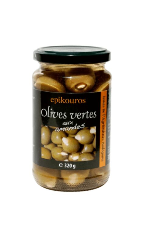 Epikouros Organic Olives Green With Almonds – 320g